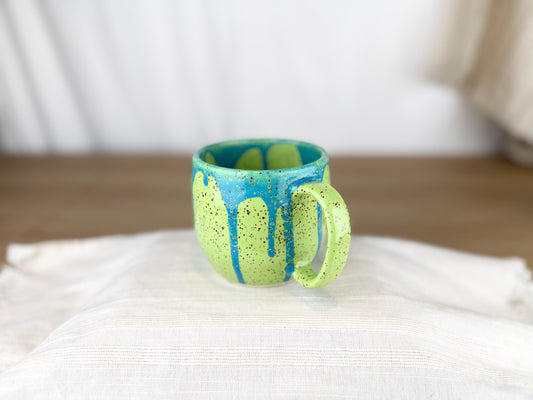 12 oz Coffee Mug, Bright Green and Blue