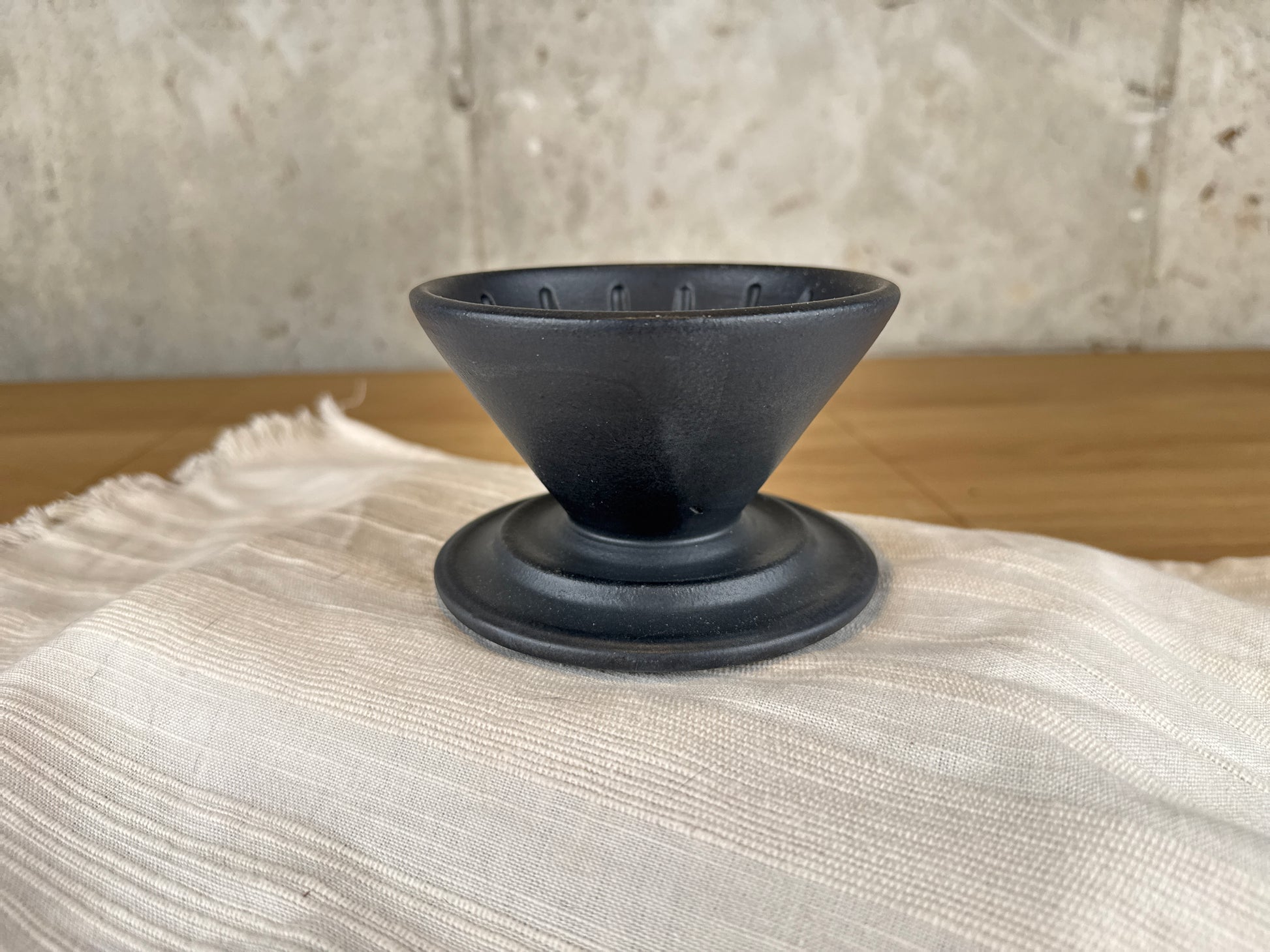 Hand made coffee pour over filter basket, glazed in gloss black over buff clay. This works with #2 cone coffee filters.